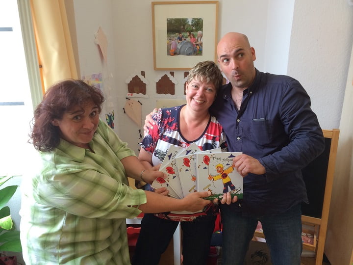 Lustigen Besuch hatte das Generationenbüro kürzlich in Form von „Theo Tollpatsch“ alias Jörg Schreiner. Mehrere Schwetzinger Familien hatten zuvor nach dem gleichnamigen Kinderbuch gesucht, es aber leider im Buchhandel nicht mehr erhalten. Kurzerhand kontaktierten die Mitarbeiterinnen des Generationenbüros Monika Emmert und Nicole Blem den Herrn „Tollpatsch“. Dieser kam vorbei und brachte eine Hand voll Bücher mit. Diese können ab sofort im Generationenbüro zu den Öffnungszeiten (Dienstag bis Donnerstag von 8 bis 12 Uhr, Donnerstag von 14 bis 18 Uhr) zum Preis von 10.-EUR abgeholt werden.